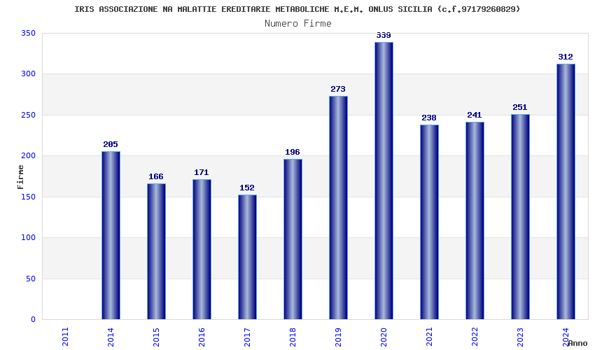 | Anno | Firme | Importi | Media | Naz. | Reg. | Prov. | Comu. |
