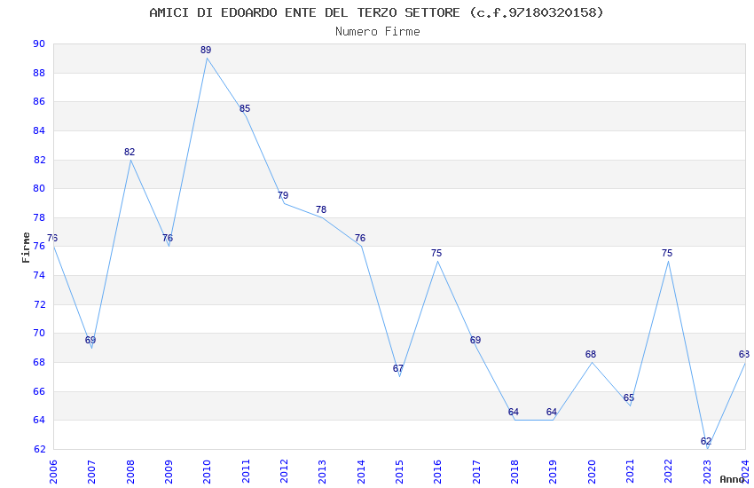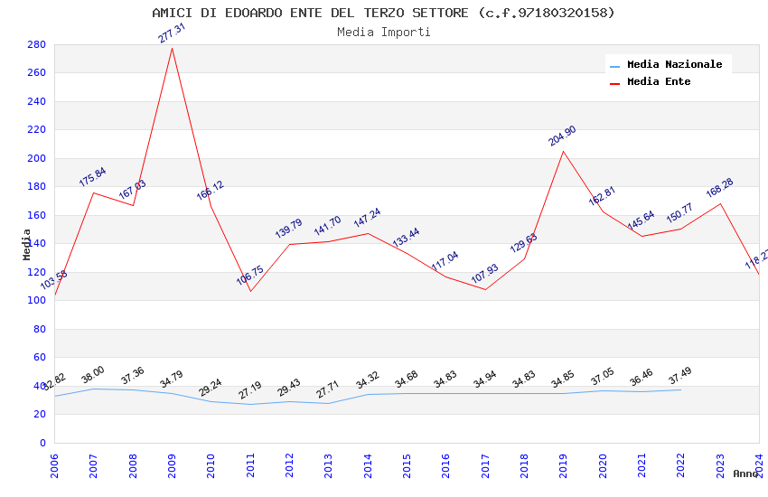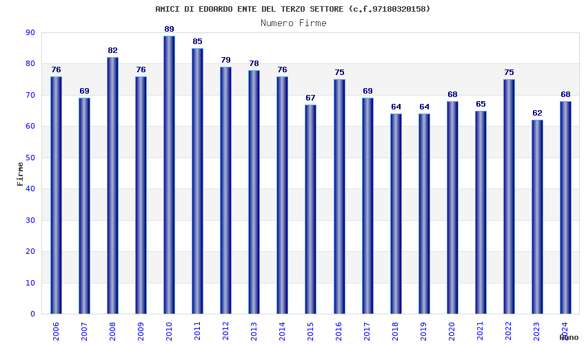 | Anno | Firme | Importi | Media | Naz. | Reg. | Prov. | Comu. |