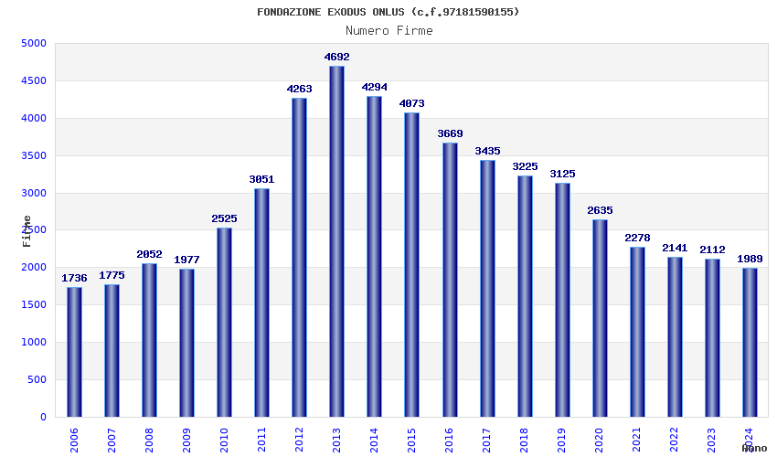 | Anno | Firme | Importi | Media | Naz. | Reg. | Prov. | Comu. |