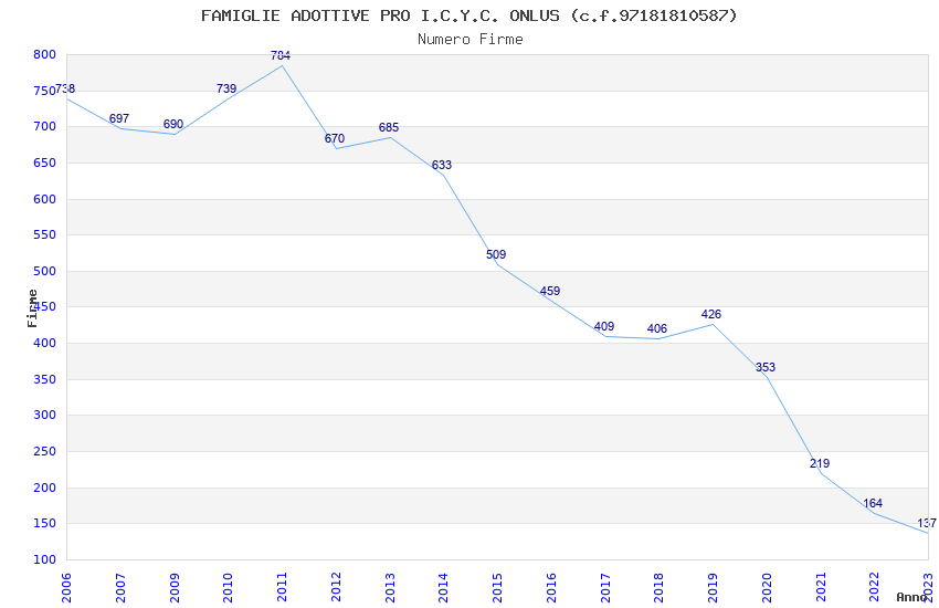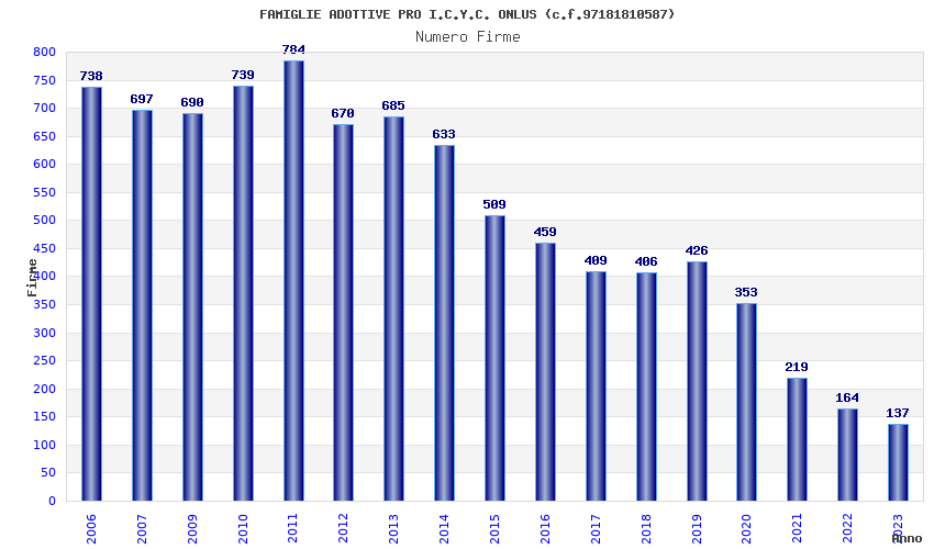 | Anno | Firme | Importi | Media | Naz. | Reg. | Prov. | Comu. |