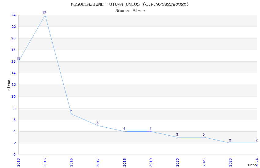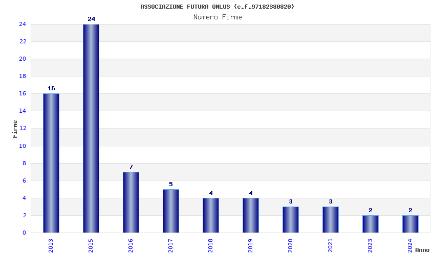 | Anno | Firme | Importi | Media | Naz. | Reg. | Prov. | Comu. |