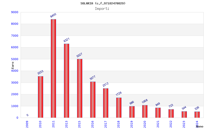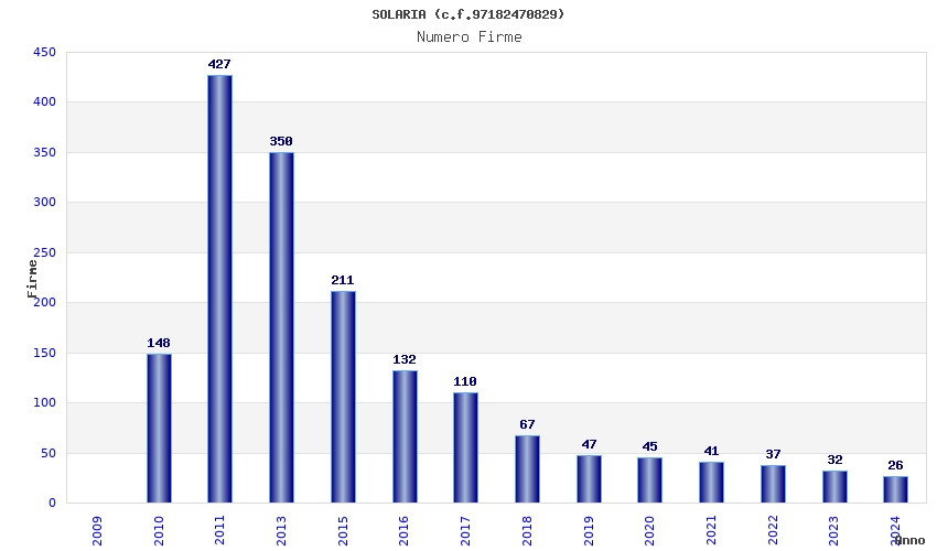 | Anno | Firme | Importi | Media | Naz. | Reg. | Prov. | Comu. |