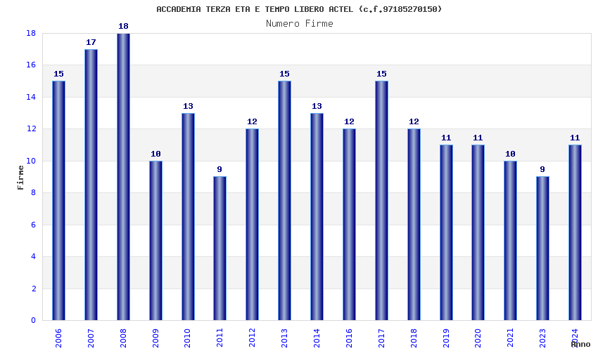 | 2017 | 15 | 736,08 | 49,07 | 38.957 | 8.269 | 2.517 | 25 |