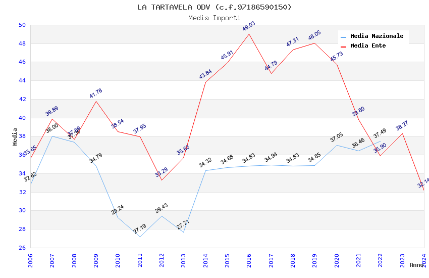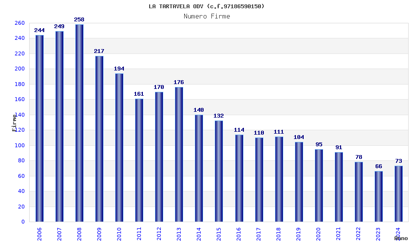 | Anno | Firme | Importi | Media | Naz. | Reg. | Prov. | Comu. |