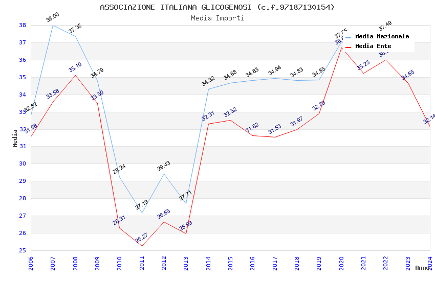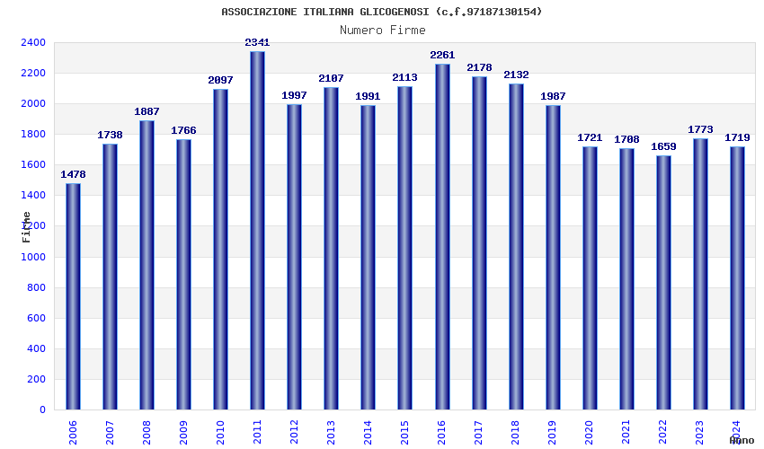 | Anno | Firme | Importi | Media | Naz. | Reg. | Prov. | Comu. |