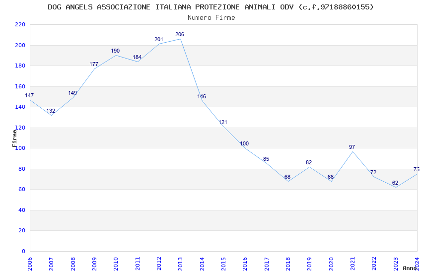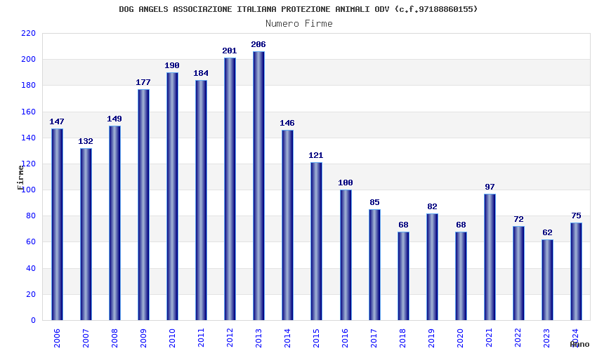 | Anno | Firme | Importi | Media | Naz. | Reg. | Prov. | Comu. |
