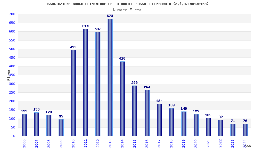 | Anno | Firme | Importi | Media | Naz. | Reg. | Prov. | Comu. |