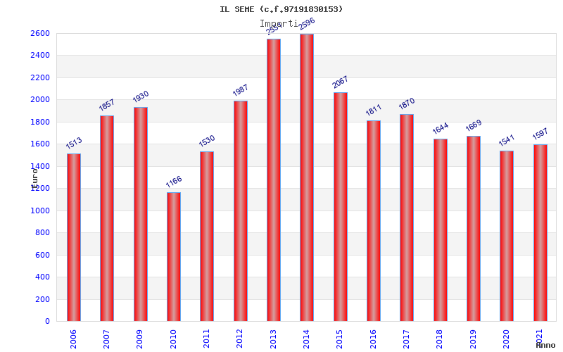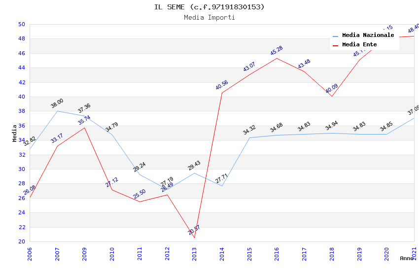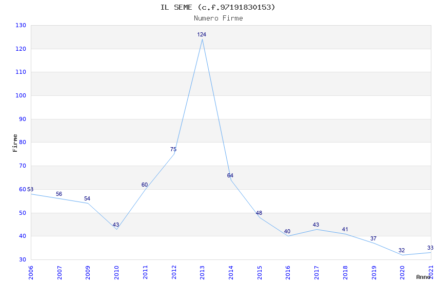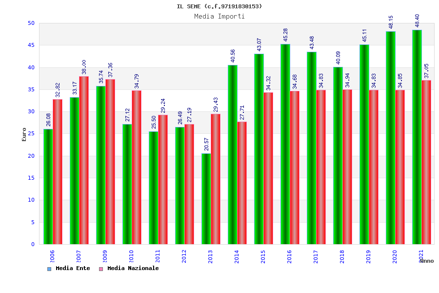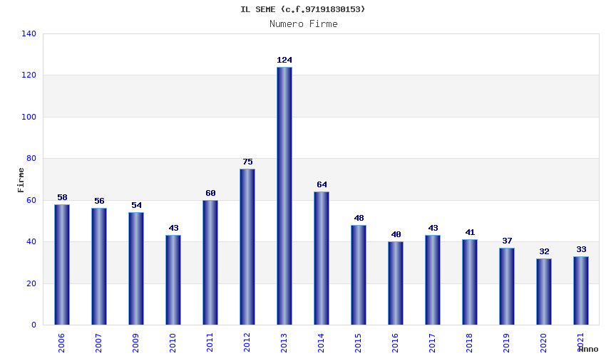 | Anno | Firme | Importi | Media | Naz. | Reg. | Prov. | Comu. |