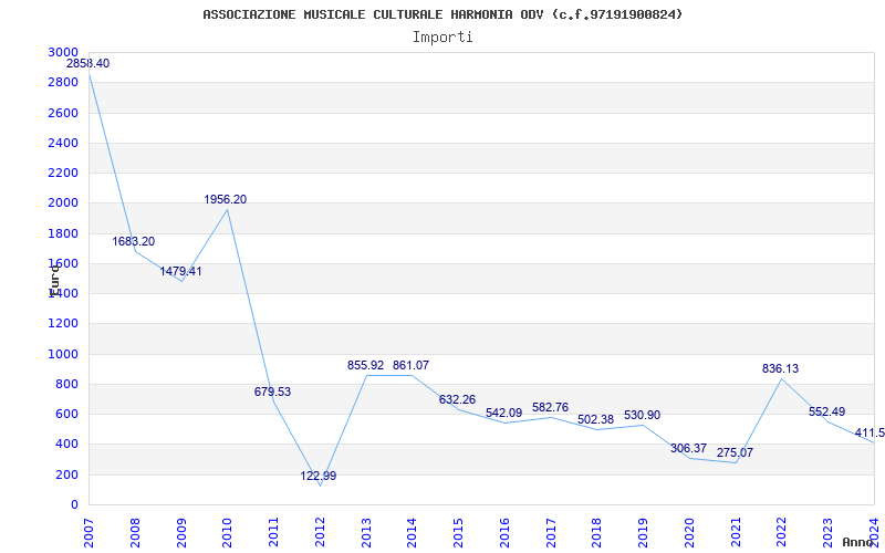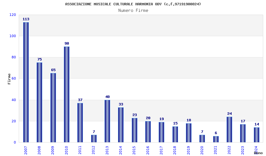 | Anno | Firme | Importi | Media | Naz. | Reg. | Prov. | Comu. |