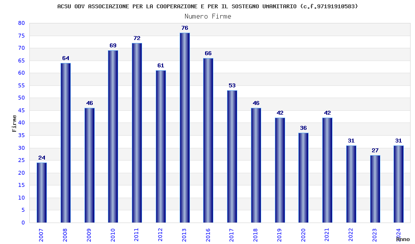 | Anno | Firme | Importi | Media | Naz. | Reg. | Prov. | Comu. |