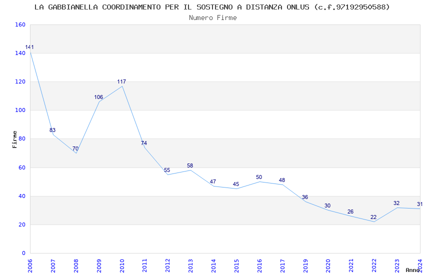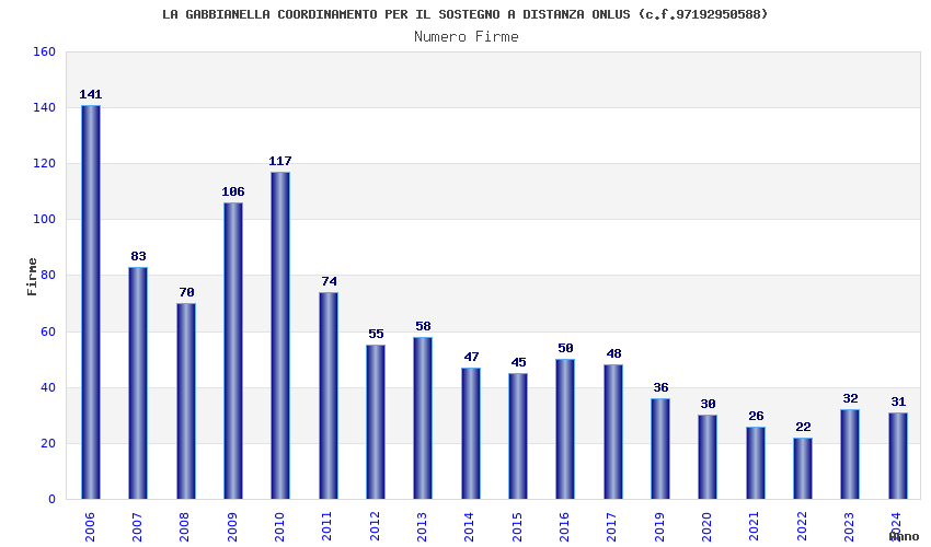| Anno | Firme | Importi | Media | Naz. | Reg. | Prov. | Comu. |
