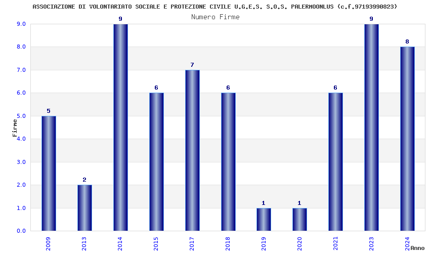 | Anno | Firme | Importi | Media | Naz. | Reg. | Prov. | Comu. |