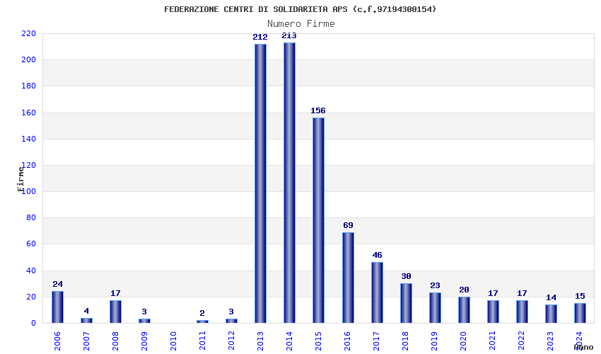 | Anno | Firme | Importi | Media | Naz. | Reg. | Prov. | Comu. |