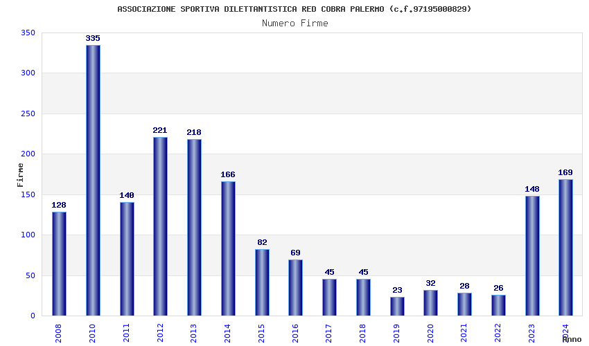| Anno | Firme | Importi | Media | Naz. | Reg. | Prov. | Comu. |