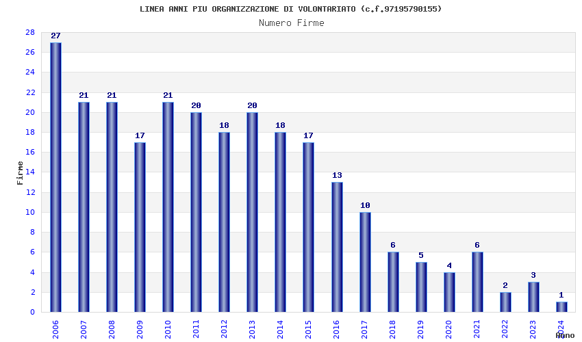 | Anno | Firme | Importi | Media | Naz. | Reg. | Prov. | Comu. |