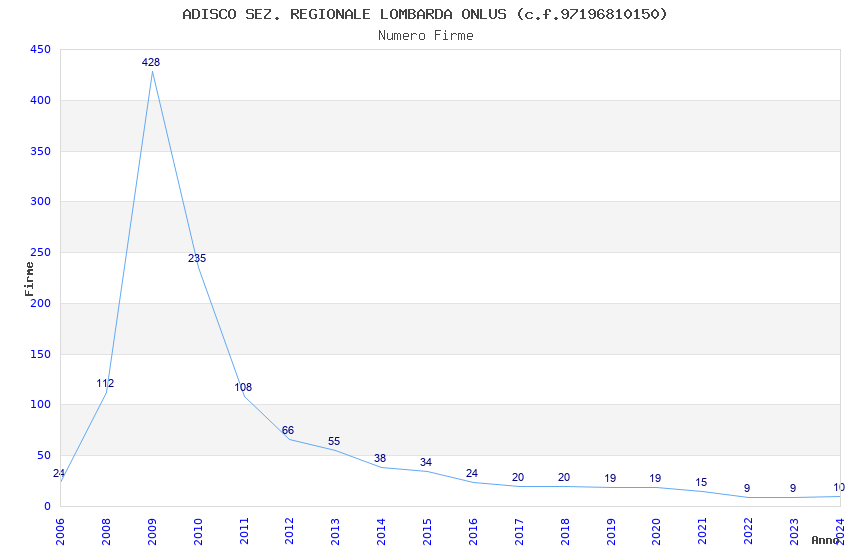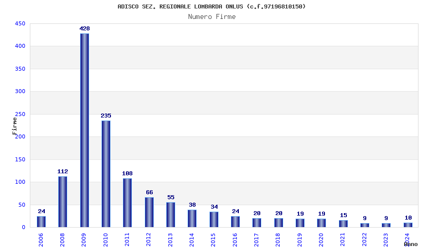 | Anno | Firme | Importi | Media | Naz. | Reg. | Prov. | Comu. |