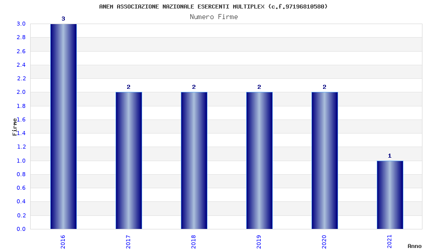 | Anno | Firme | Importi | Media | Naz. | Reg. | Prov. | Comu. |