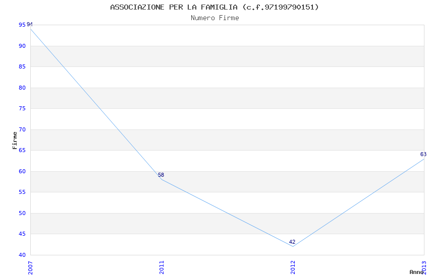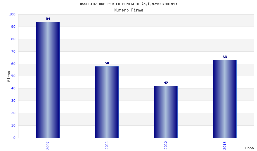 | Anno | Firme | Importi | Media | Naz. | Reg. | Prov. | Comu. |