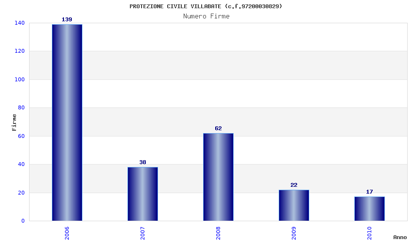 | Anno | Firme | Importi | Media | Naz. | Reg. | Prov. | Comu. |