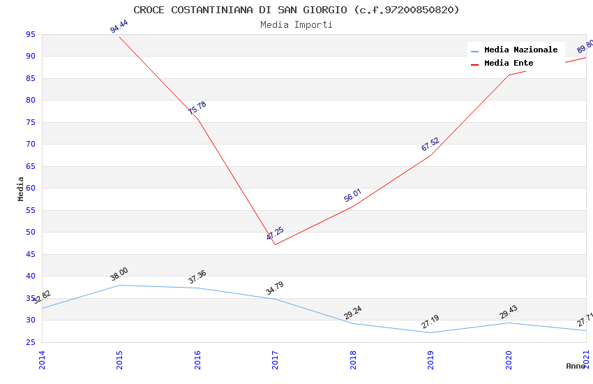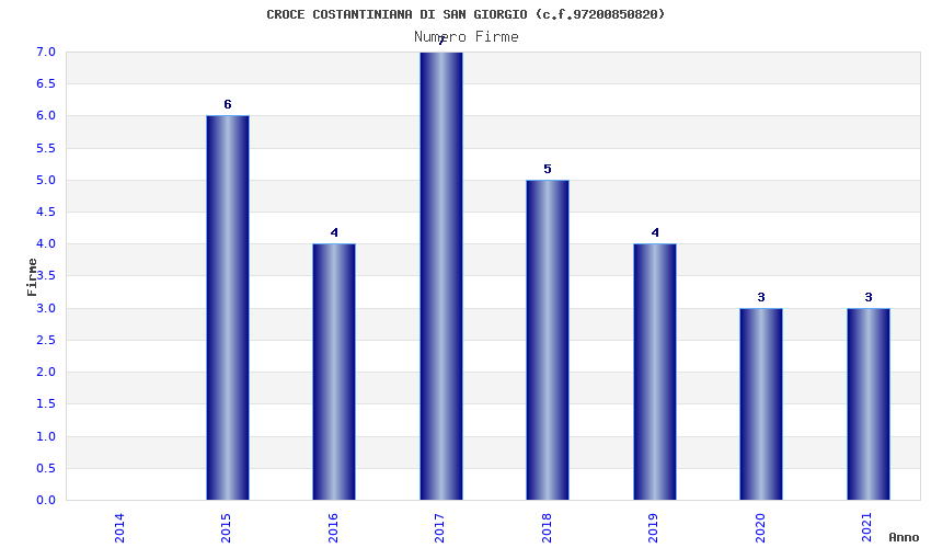 | Anno | Firme | Importi | Media | Naz. | Reg. | Prov. | Comu. |