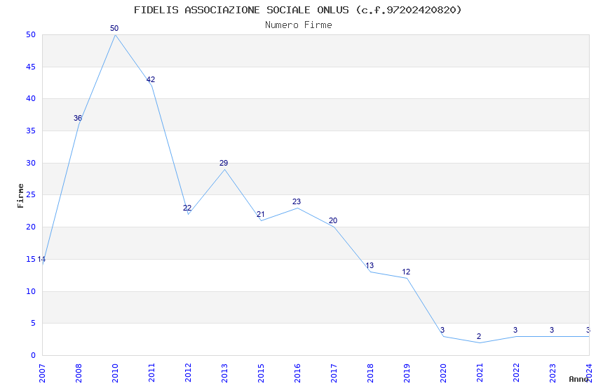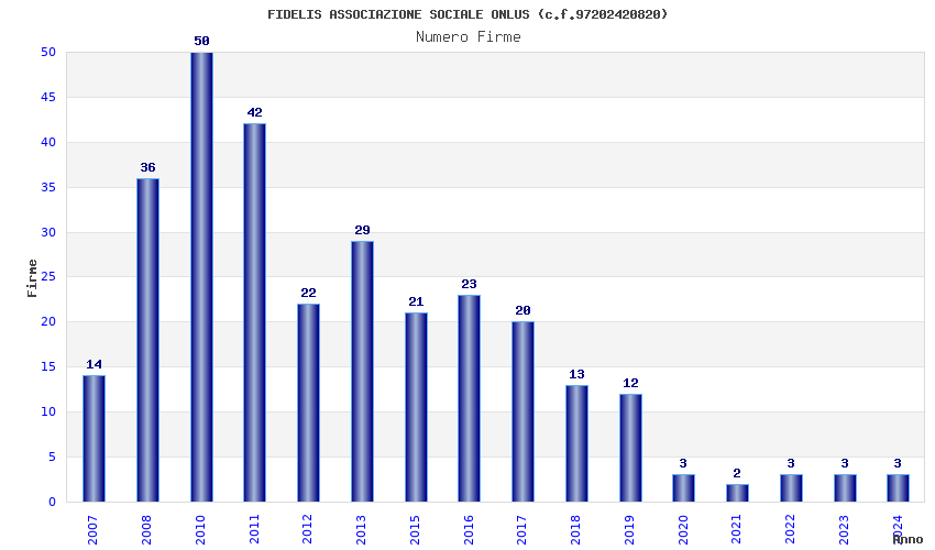 | Anno | Firme | Importi | Media | Naz. | Reg. | Prov. | Comu. |