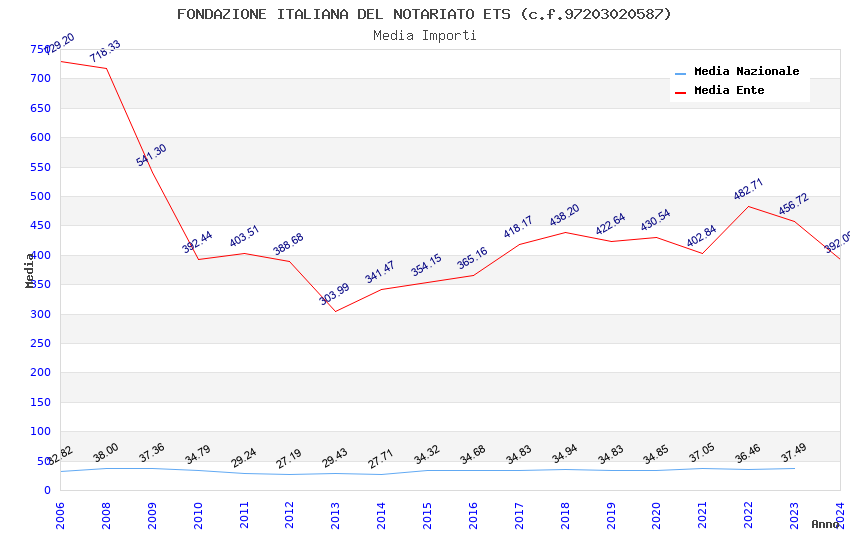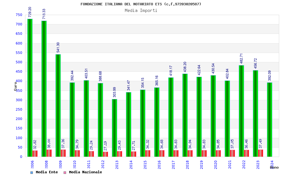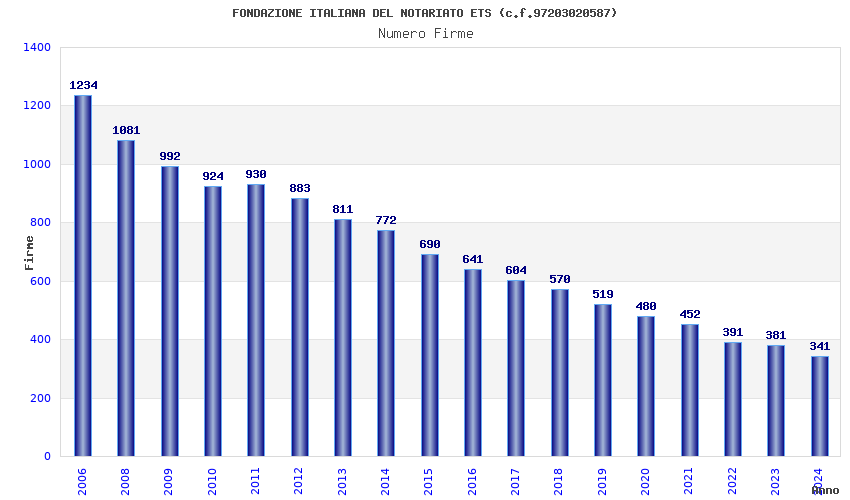 | Anno | Firme | Importi | Media | Naz. | Reg. | Prov. | Comu. |