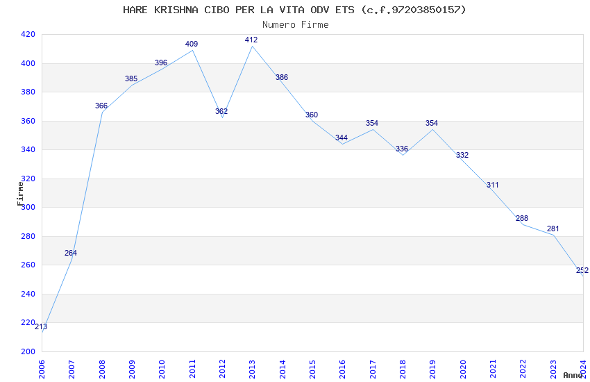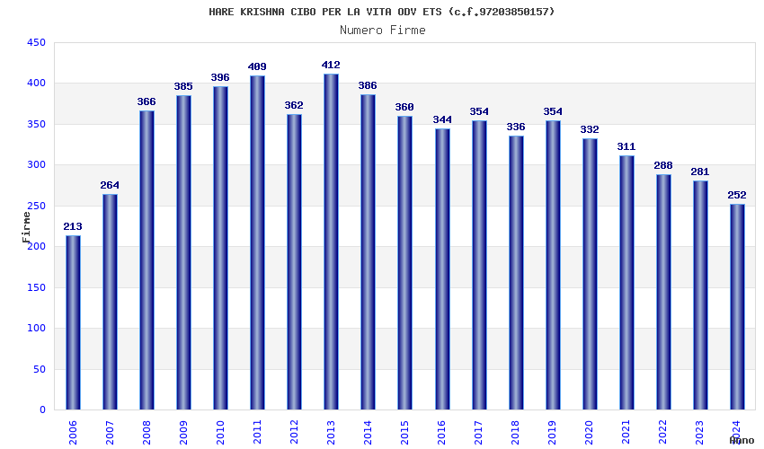 | Anno | Firme | Importi | Media | Naz. | Reg. | Prov. | Comu. |