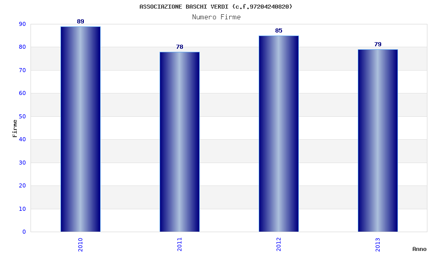 | Anno | Firme | Importi | Media | Naz. | Reg. | Prov. | Comu. |