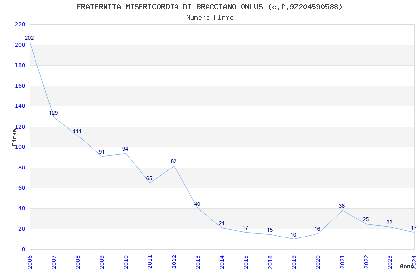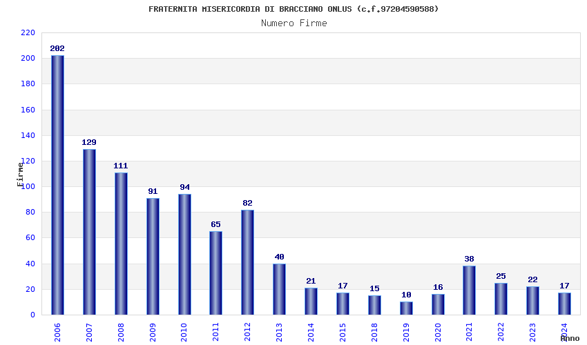 | Anno | Firme | Importi | Media | Naz. | Reg. | Prov. | Comu. |