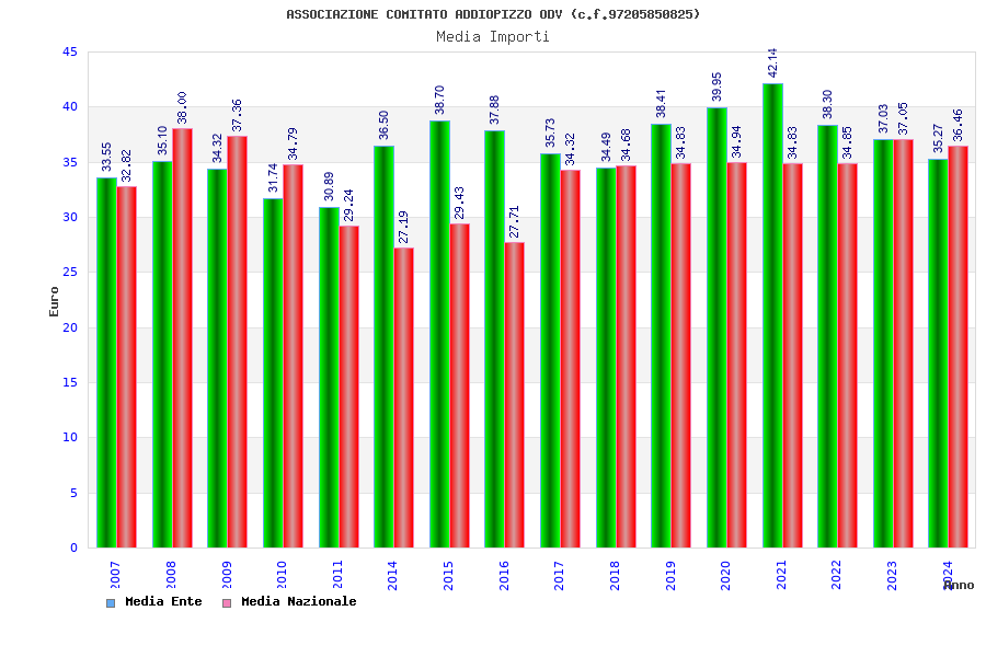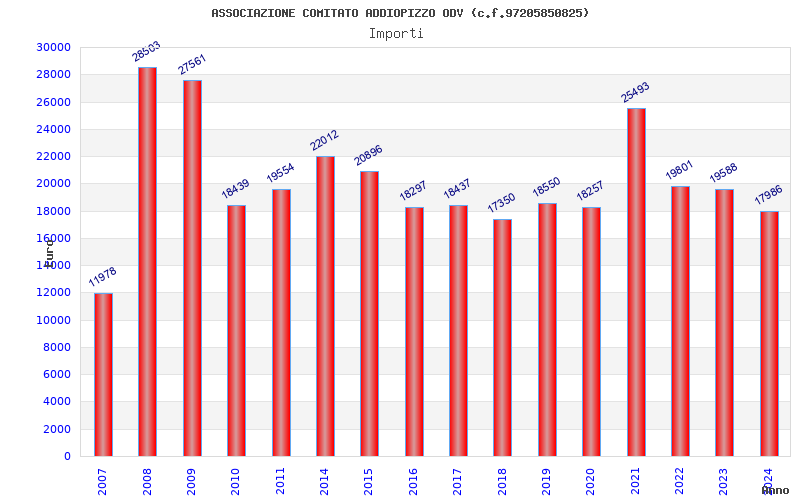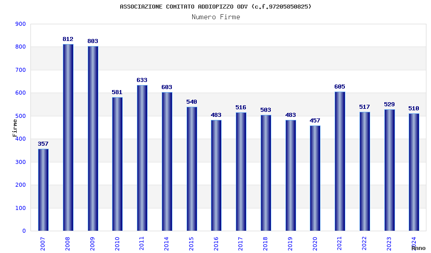 | Anno | Firme | Importi | Media | Naz. | Reg. | Prov. | Comu. |