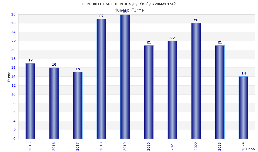 | Anno | Firme | Importi | Media | Naz. | Reg. | Prov. | Comu. |