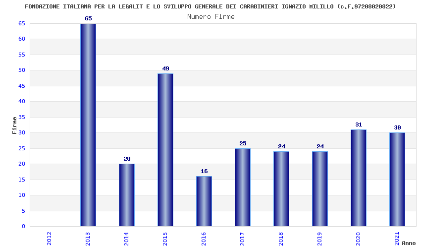 | Anno | Firme | Importi | Media | Naz. | Reg. | Prov. | Comu. |