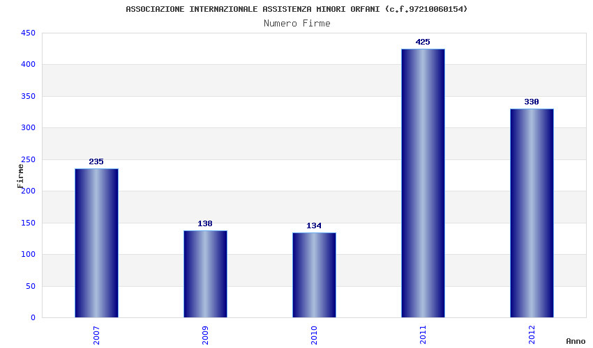 | Anno | Firme | Importi | Media | Naz. | Reg. | Prov. | Comu. |