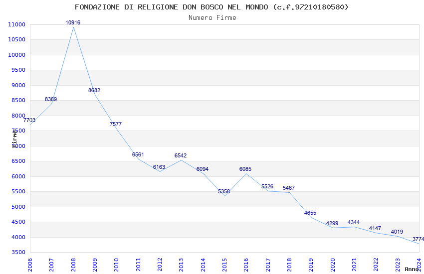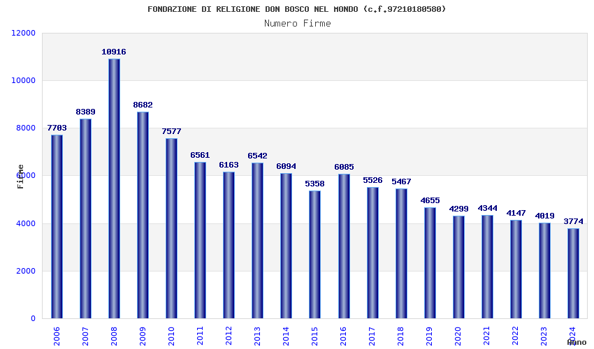 | Anno | Firme | Importi | Media | Naz. | Reg. | Prov. | Comu. |