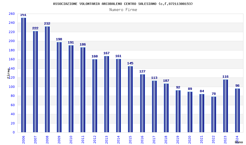 | Anno | Firme | Importi | Media | Naz. | Reg. | Prov. | Comu. |