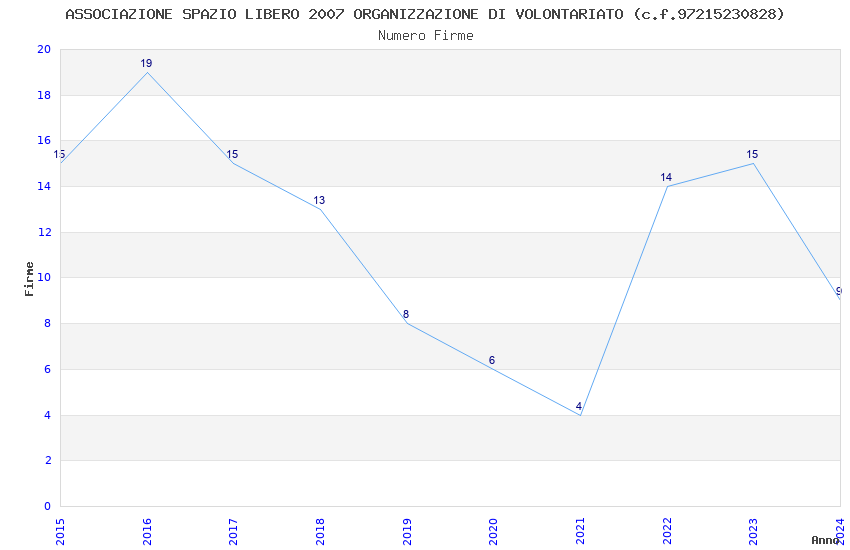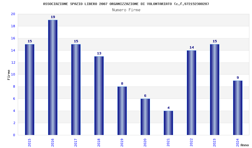 | Anno | Firme | Importi | Media | Naz. | Reg. | Prov. | Comu. |
