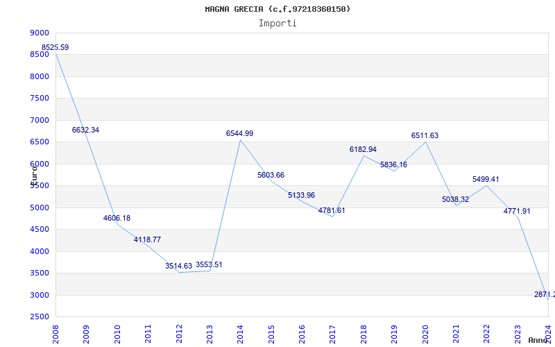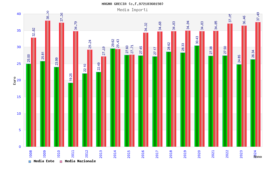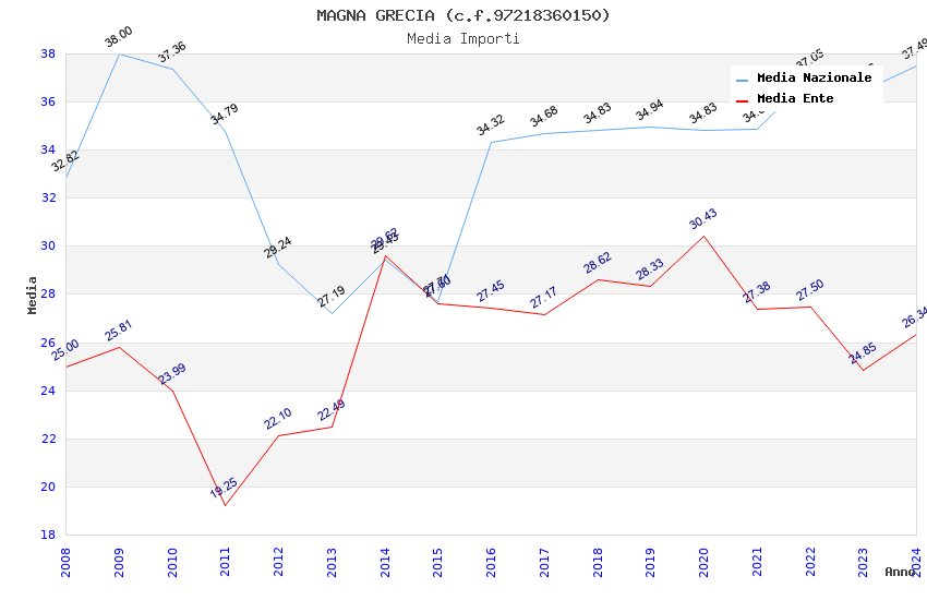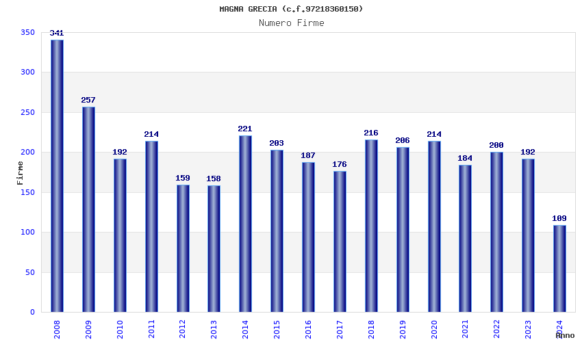 | Anno | Firme | Importi | Media | Naz. | Reg. | Prov. | Comu. |