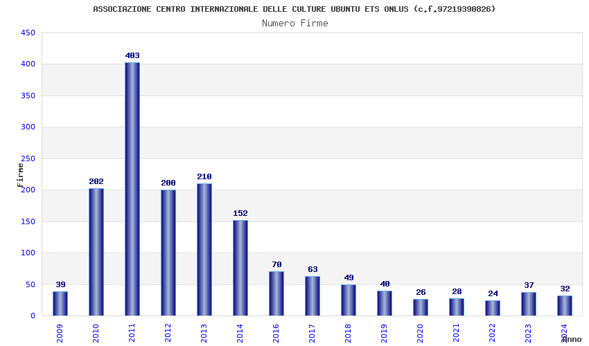 | Anno | Firme | Importi | Media | Naz. | Reg. | Prov. | Comu. |