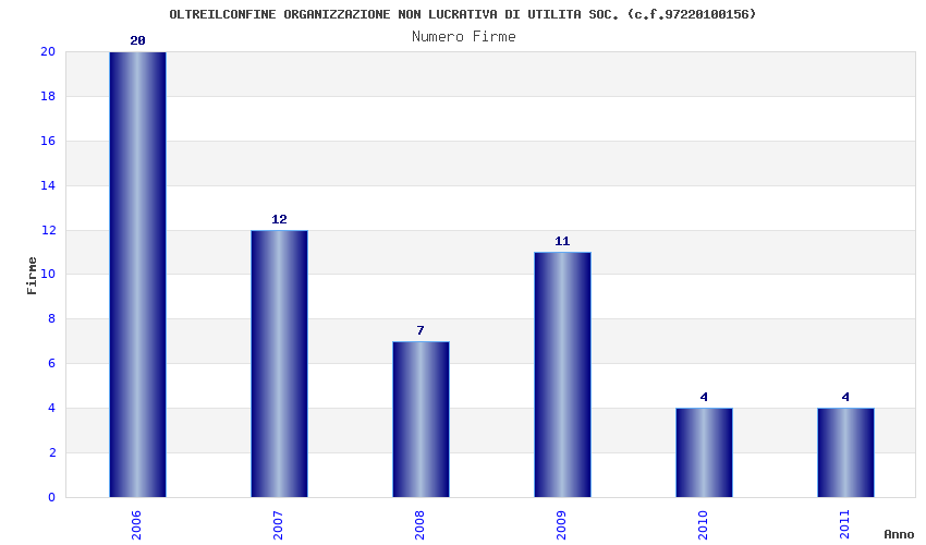 | Anno | Firme | Importi | Media | Naz. | Reg. | Prov. | Comu. |