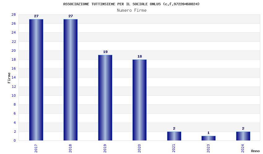 | Anno | Firme | Importi | Media | Naz. | Reg. | Prov. | Comu. |