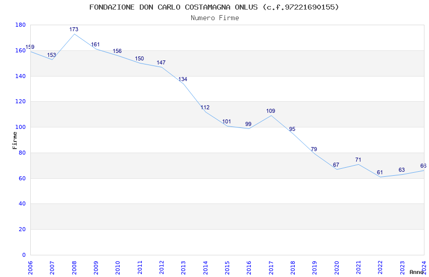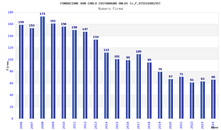 | Anno | Firme | Importi | Media | Naz. | Reg. | Prov. | Comu. |