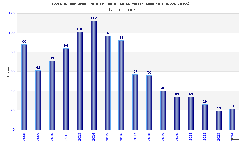 | Anno | Firme | Importi | Media | Naz. | Reg. | Prov. | Comu. |