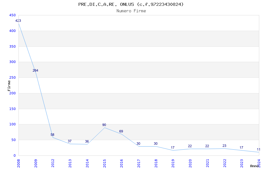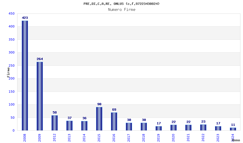 | Anno | Firme | Importi | Media | Naz. | Reg. | Prov. | Comu. |
