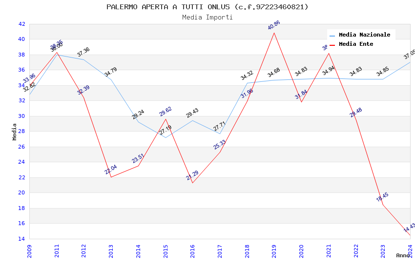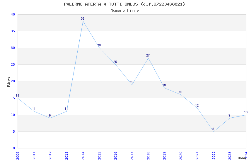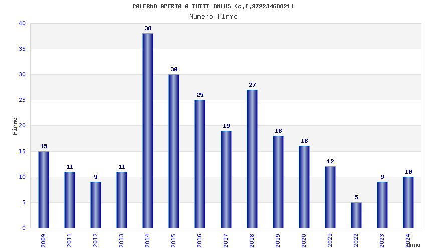 | Anno | Firme | Importi | Media | Naz. | Reg. | Prov. | Comu. |