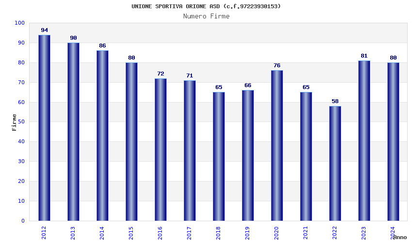 | Anno | Firme | Importi | Media | Naz. | Reg. | Prov. | Comu. |