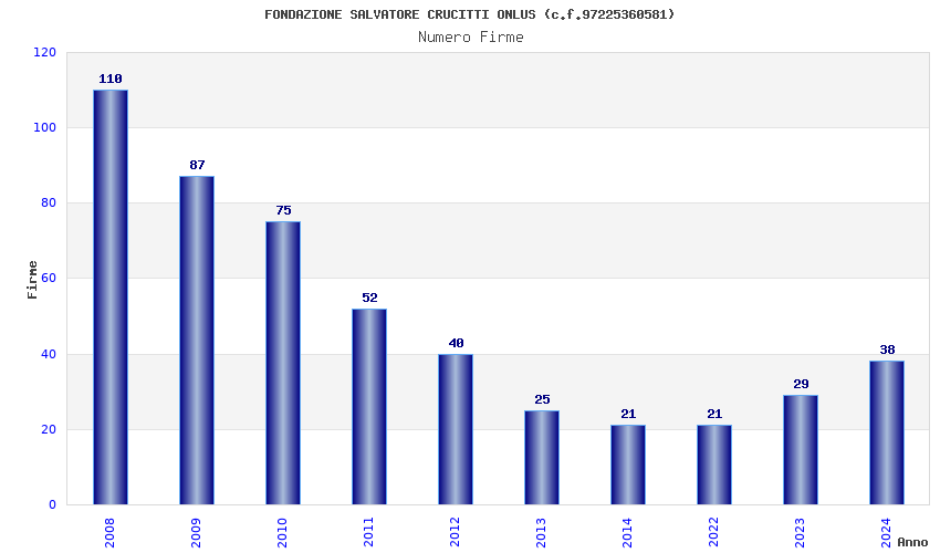 | Anno | Firme | Importi | Media | Naz. | Reg. | Prov. | Comu. |