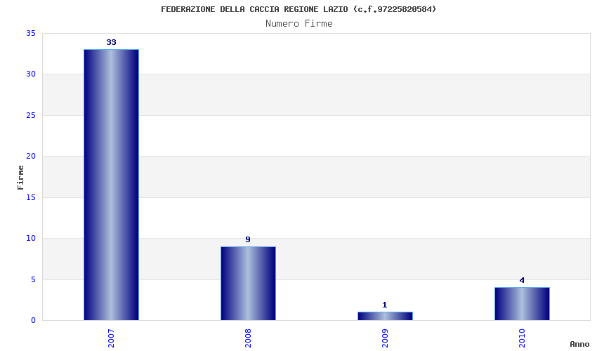 | Anno | Firme | Importi | Media | Naz. | Reg. | Prov. | Comu. |