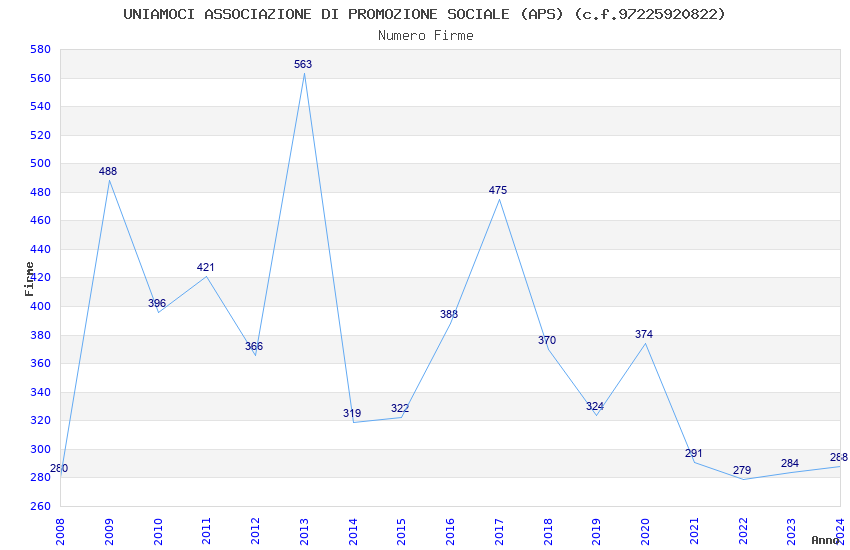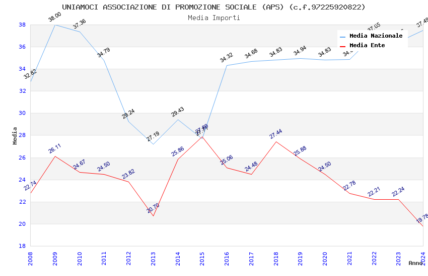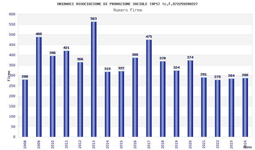 | Anno | Firme | Importi | Media | Naz. | Reg. | Prov. | Comu. |