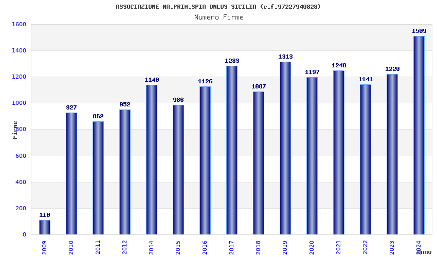 | Anno | Firme | Importi | Media | Naz. | Reg. | Prov. | Comu. |