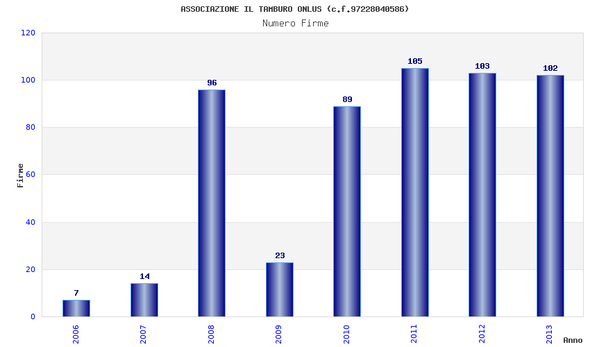 | Anno | Firme | Importi | Media | Naz. | Reg. | Prov. | Comu. |